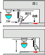 油墨在這機款中是放置于倒轉的密封式油盅里(圖4)。油盅緊貼于鋼板表面,令油墨不會漏出。同時間,油盅也有刀片的作用,在鋼板上來回移動,把油墨留在蝕刻圖案上。這裝置的好處是溶劑的揮發度可以降至最低。但要留意的是,油盅的價錢是可以很貴的,所以需要小心地使用。油盅的類型越來越多變,無論在尺寸及設計方面,均能切合使用者之需要。