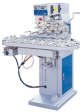 小型移印機是一款中型的四色轉盤式移印機,此款機型適用范圍極廣,是當前最多廠家選擇的四色移印機,油杯式設計,符合環保標準,轉盤式的結構使它可在同一生產周期內循環進行四色套印,轉盤采用日本高精度CNC加工,速度快,性能穩定,相比穿梭移印機,調較復雜,最快印刷速度1500次/小時,最大印刷面積60*120MM,適合在電子產品,工藝品,玩具等產品表面圖案LOGO印刷。