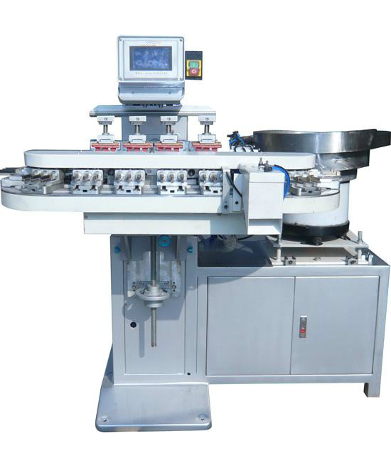 四面翻轉衣架粒高速移印機專業印刷適合金屬、玻璃、陶瓷、塑膠、木材、皮革等材質的印刷面積比較小的平面、弧面以及不規則面產品的精密印刷。如手機按鍵、高爾夫球及球頭、玩具、筆、鼠標、電子產品、工藝品、鞋跟等等。